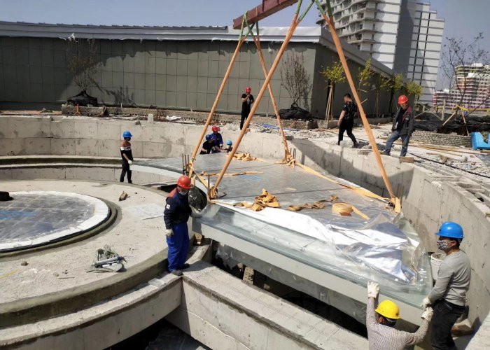 The Glass-Bottom Pool project at Bayu Bay Magic Hot Spring Park, located in Liaoning, China, posed challenges during the design phase. During the initial site inspection, AUPOOL engineers discovered that the project site is situated in a seismic zone. Records indicate that over 60 earthquakes with a magnitude of 4.7 or higher have occurred in this seismic zone, including 6 earthquakes between magnitude 7 and 7.9, and 1 earthquake with a magnitude exceeding 8. To overcome the seismic challenges, requirements for the resilience, quality, and installation precision of the pool glass bottom panels had to be elevated. Furthermore, Liaoning experiences extremely low temperatures in winter, reaching below minus thirty degrees Celsius, while summer temperatures can exceed thirty degrees Celsius, resulting in a temperature difference of over sixty degrees Celsius. In such an environment, the glass pool bottom panels also demand high weather resistance.
