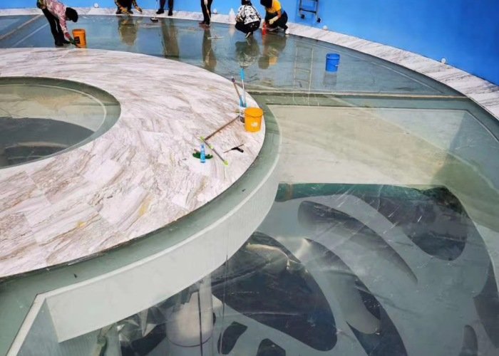 With extensive construction experience in acrylic glass pool projects, Aupool divided the entire glass pool bottom into five sections, using high-quality acrylic glass panels integrated with concrete structures. The project was completed, with the transparent area measuring 2798.6 square feet. Aupool's acrylic glass panels exhibit excellent weather resistance and seismic resistance, meeting all requirements for the construction of the glass-bottom pool at Bayu Bay Magic Hot Spring Park.