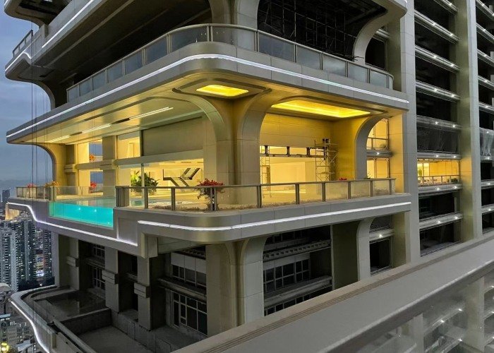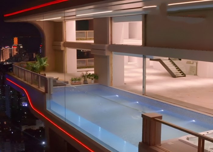 Each residence in Di Jing Yuan comes complete with an acrylic glass swimming pool, and in this instance, we present a showcase of a sample unit featuring a stunning Plexiglass swimming pool on the 44th floor. This epitomizes the opulence and sophistication that defines Di Jing Yuan.